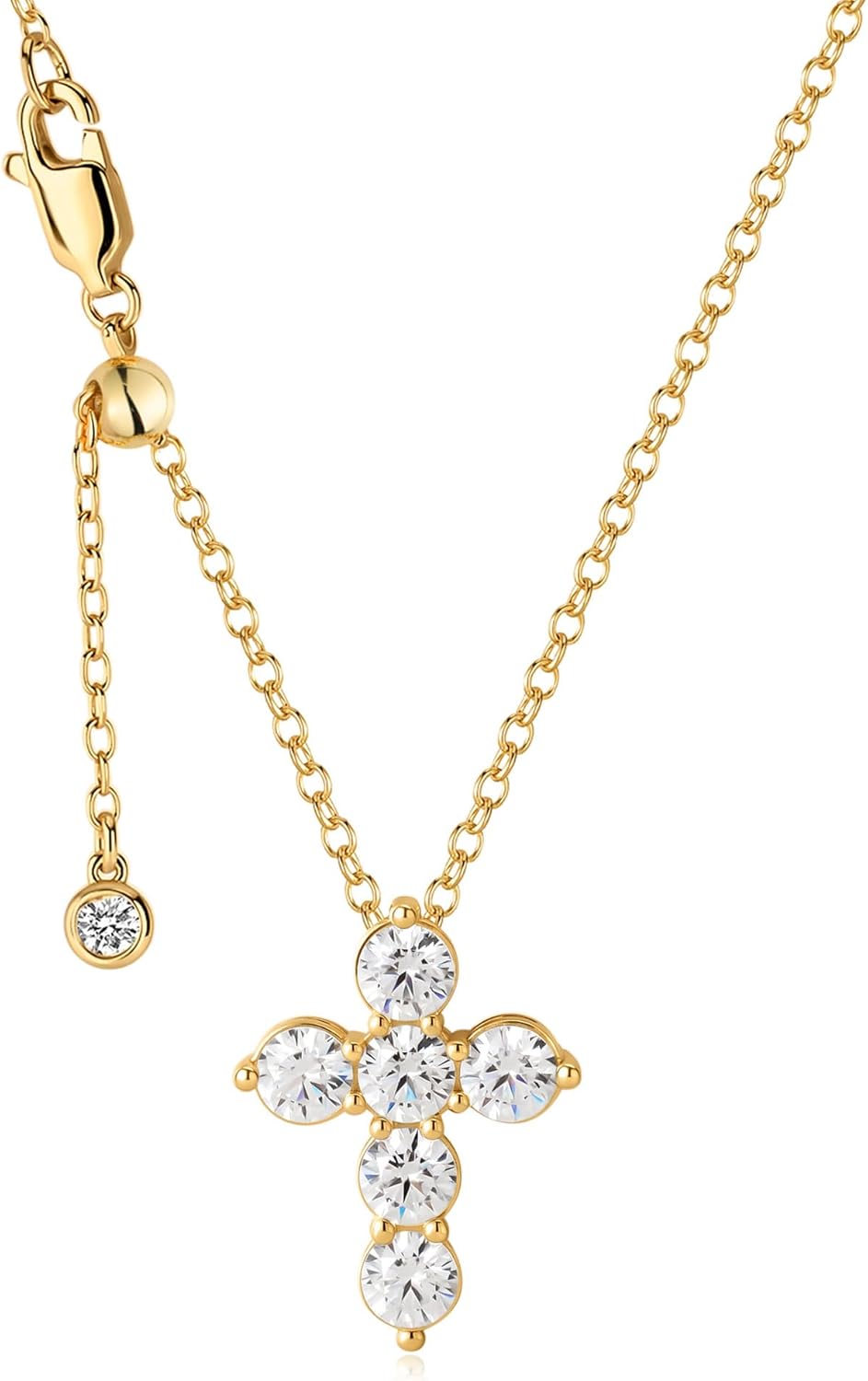 ASHINE Cubic Zirconia Cross Necklace for Women, 14K Gold Plated Religious Faith Pendant with Adjustable 20" Chain