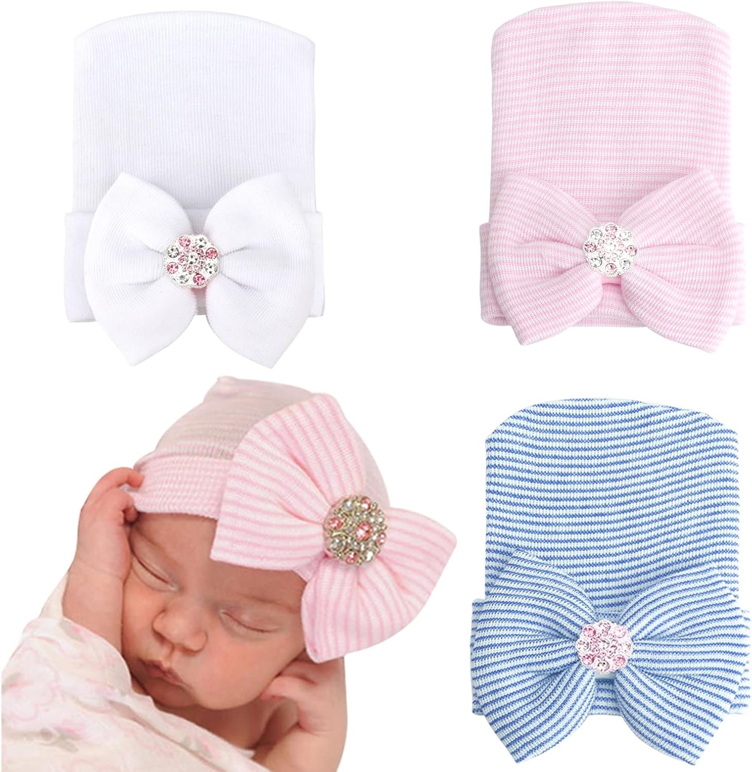 Newborn Baby Girl Hats with Bow No Scratch Cotton Toddler Infant Beanie Caps Soft Newborn Hospital Hat 0-3 Months