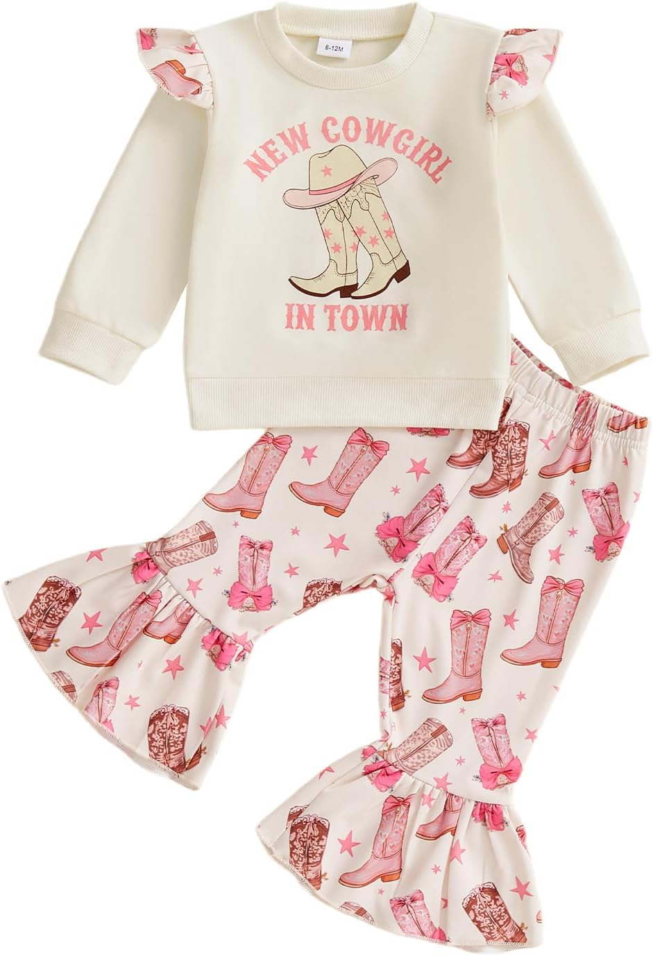 Karuedoo Toddler Baby Girl Western Outfit Letter Print Crewneck Sweatshirt Top Cow Flared Pants Set 2PCS Fall Winter Outfits