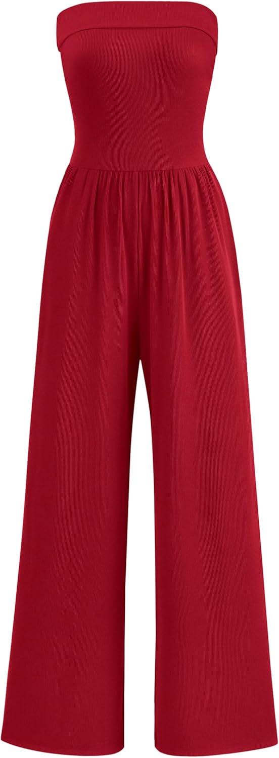 PRETTYGARDEN One Piece Strapless Jumpsuits for Women Dressy Casual Wide Leg Tube Rompers Jumper Beach Vacation Summer Outfits