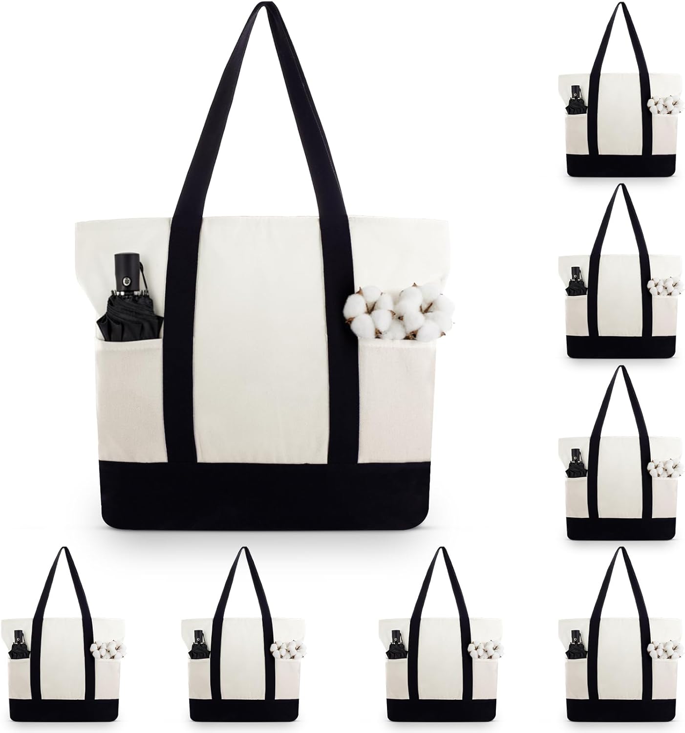 Capoda 16 x 14 Canvas Tote Bags with 2 Pocket, Bulk Zipper Totes Reusable Blank Sublimation Bags for Shopping Grocery DIY