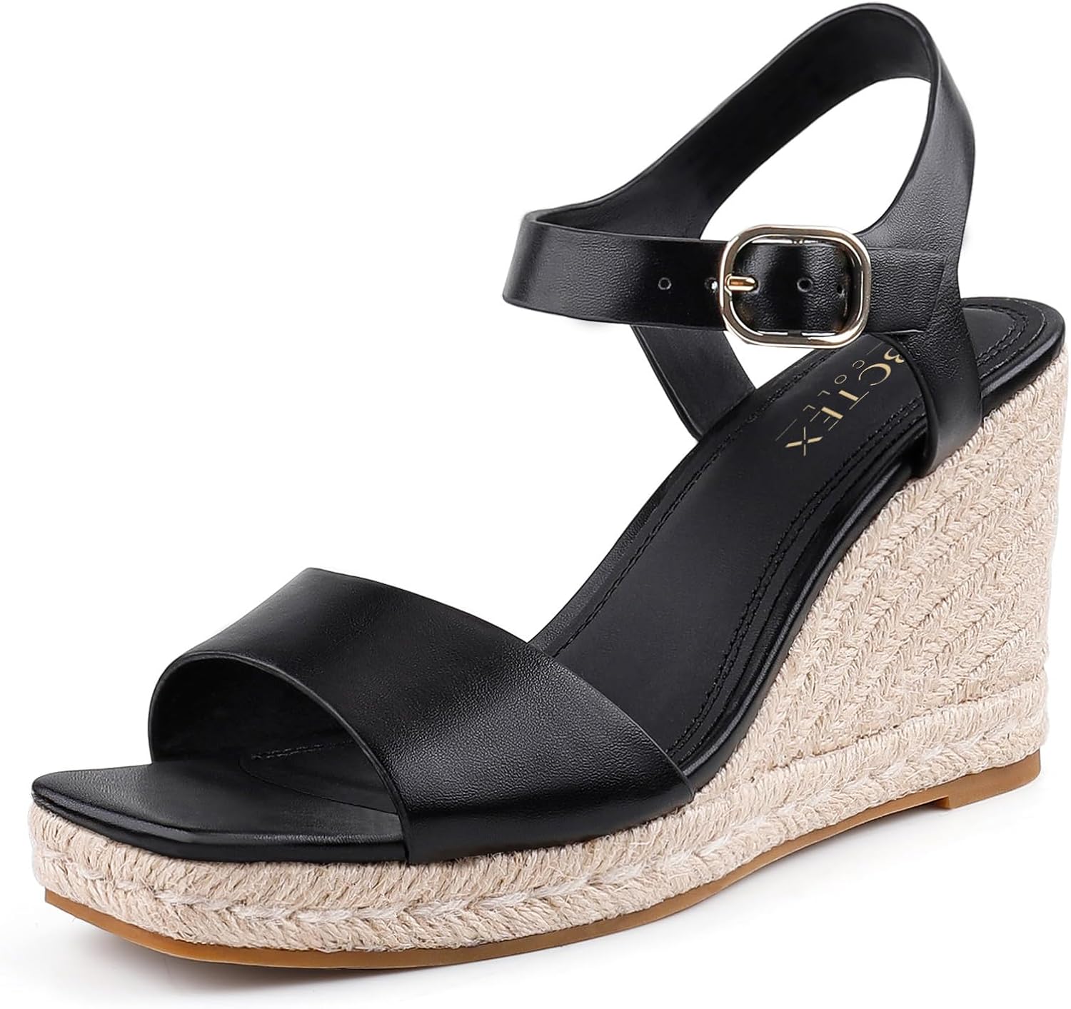BCTEX COLL Women's Platform Wedge Espadrilles Sandals Comfortable Open Toe Ankle Strap Summer Casual Shoes Brown Black Nude