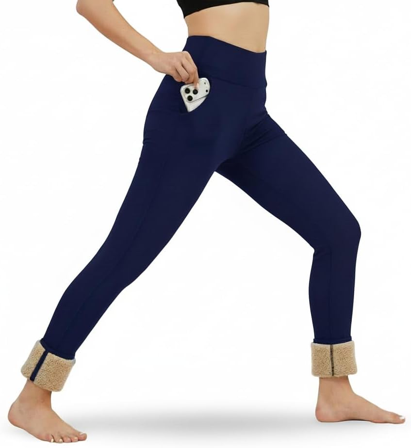 Women's Fleece Lined Leggings Thermal Warm Winter Leggings High Waisted Tummy Control Jogger Yoga Pants with Pockets
