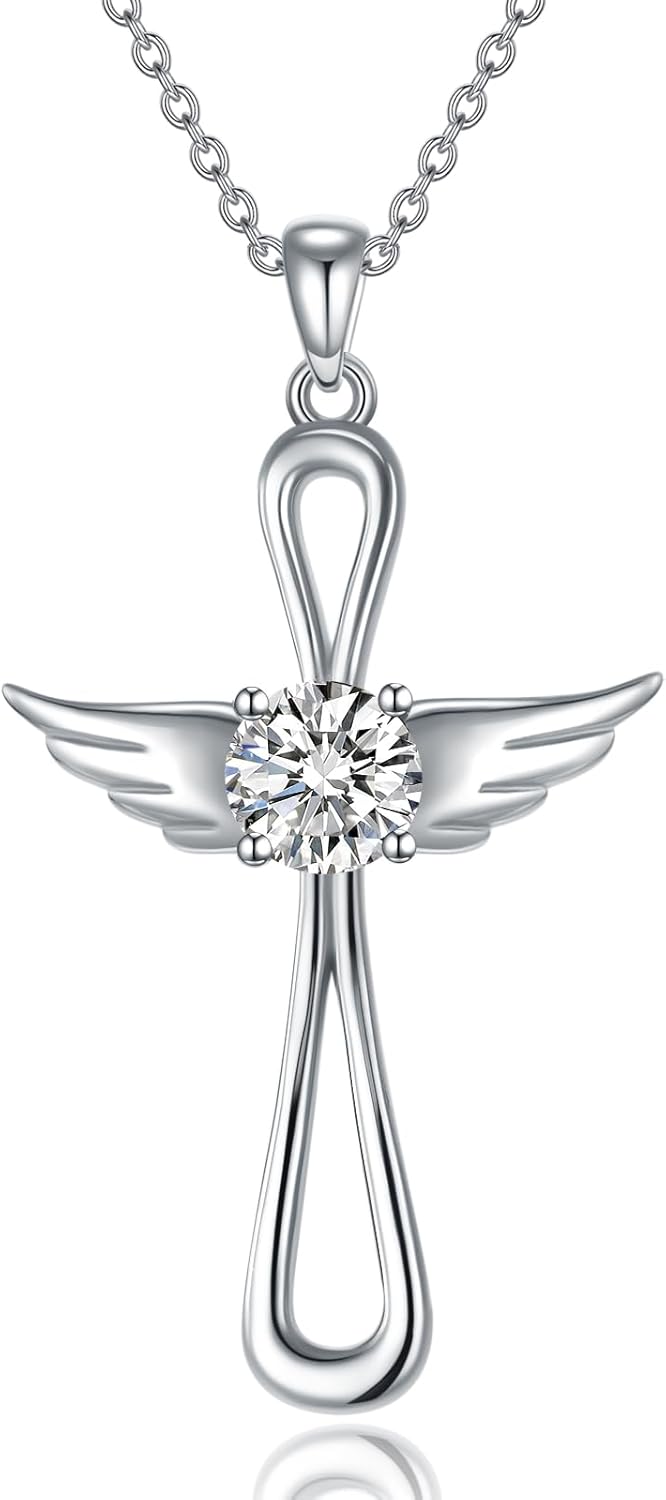 Moissanite Diamond Angel Wings Cross Necklace 14K Gold Plated 925 Sterling Silver Diamond Cross Pendant Necklaces for Women Birthday Christmas Valentines Day Gifts for Her Girlfriend Wife, 18+2 Inch
