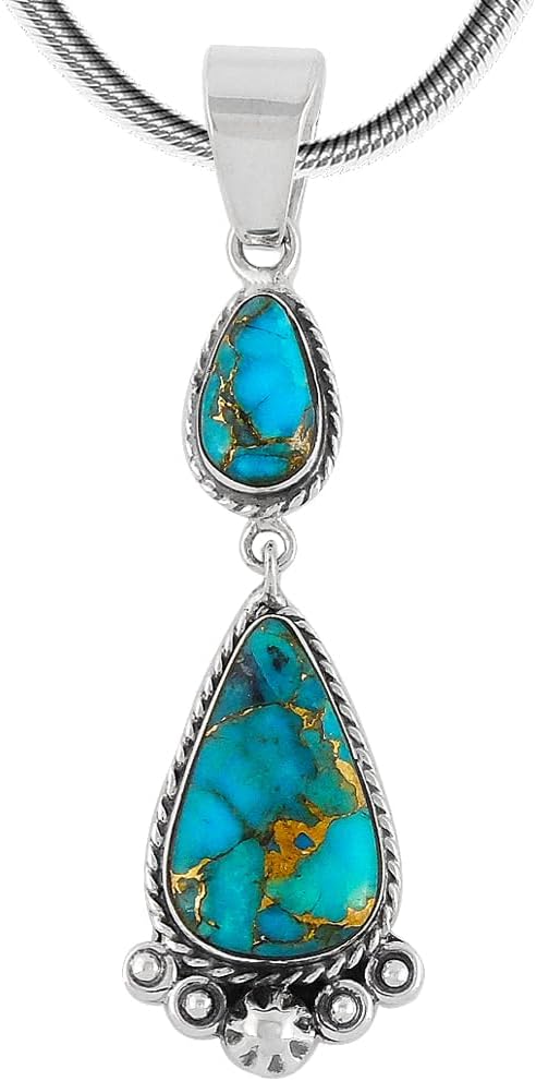 Turquoise Pendant Necklace Sterling Silver 925 (Sterling Silver Pendant with 20" Stainless Chain)