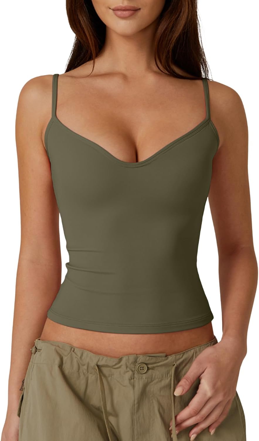 QINSEN Womens Spaghetti Strap Sweetheart Neck Sleeveless Top Slim Fit Going Out Camisole Basic Top