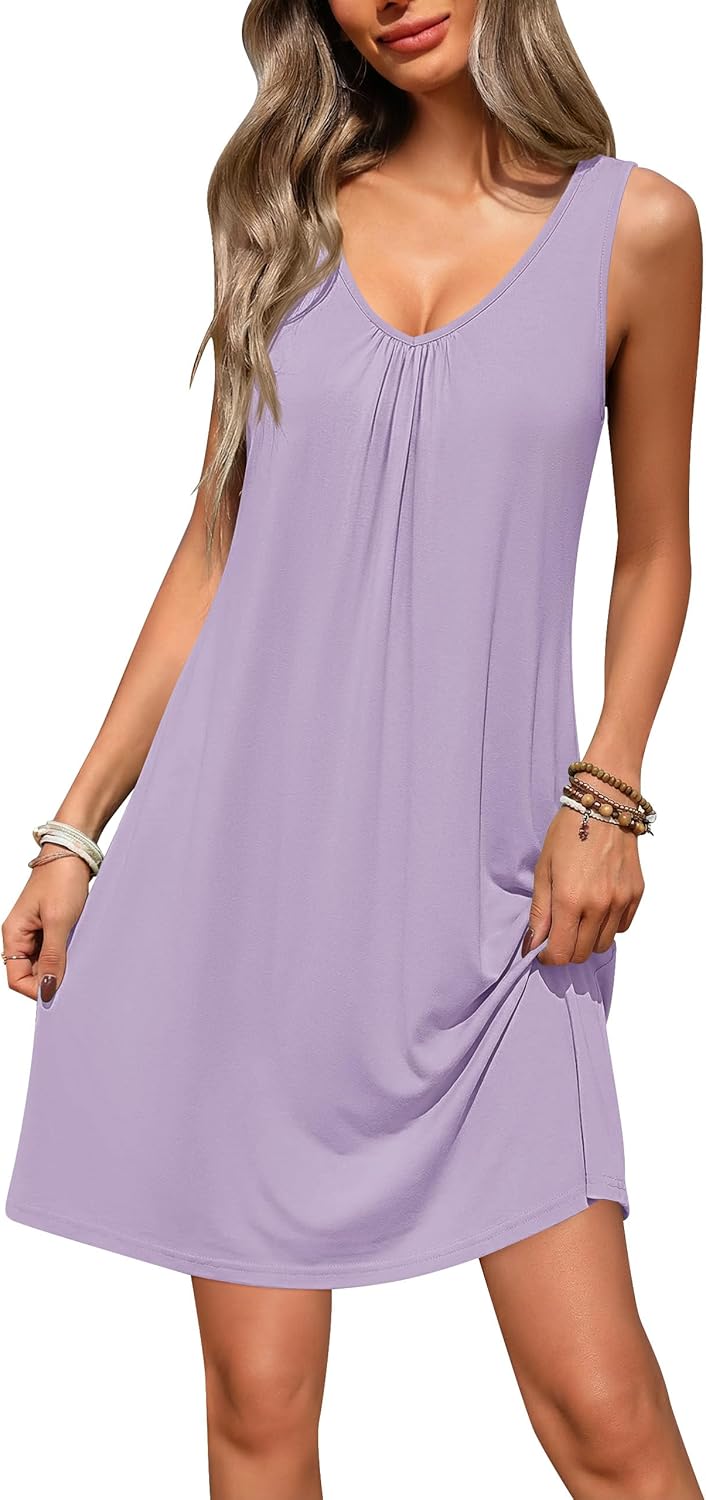 Ekouaer Nightgowns for Women Bamboo Viscose Night Gown Sleeveless Sleep Shirts Tank Sleep Dress V-neck Sleepwear