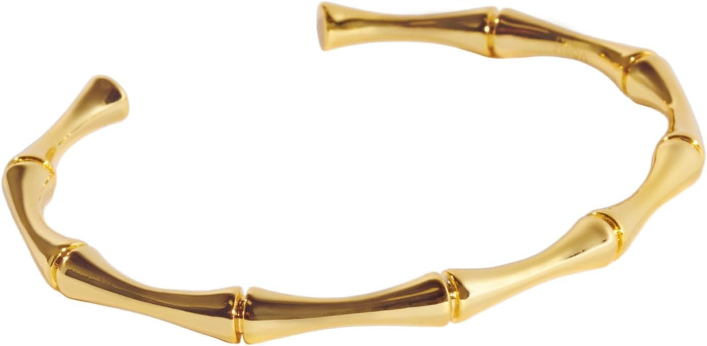 VÓEN Solara Gold Cuff Bracelet for Women - 14K Gold rounded Edge Wrist Cuff Bracelet - Adjustable from 6 inches to 7.5 inches - Modern Polished gold jewelry for Everyday Wear or Gifting