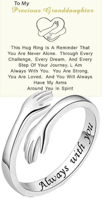 To My Granddaughter Hug Ring For Hope Rings, Motivational Stainless Steel Always With You Ring, Open Adjustable Spiral Wrap Twist Hope Rings Jewelry for Her Mom Wife Best Friend