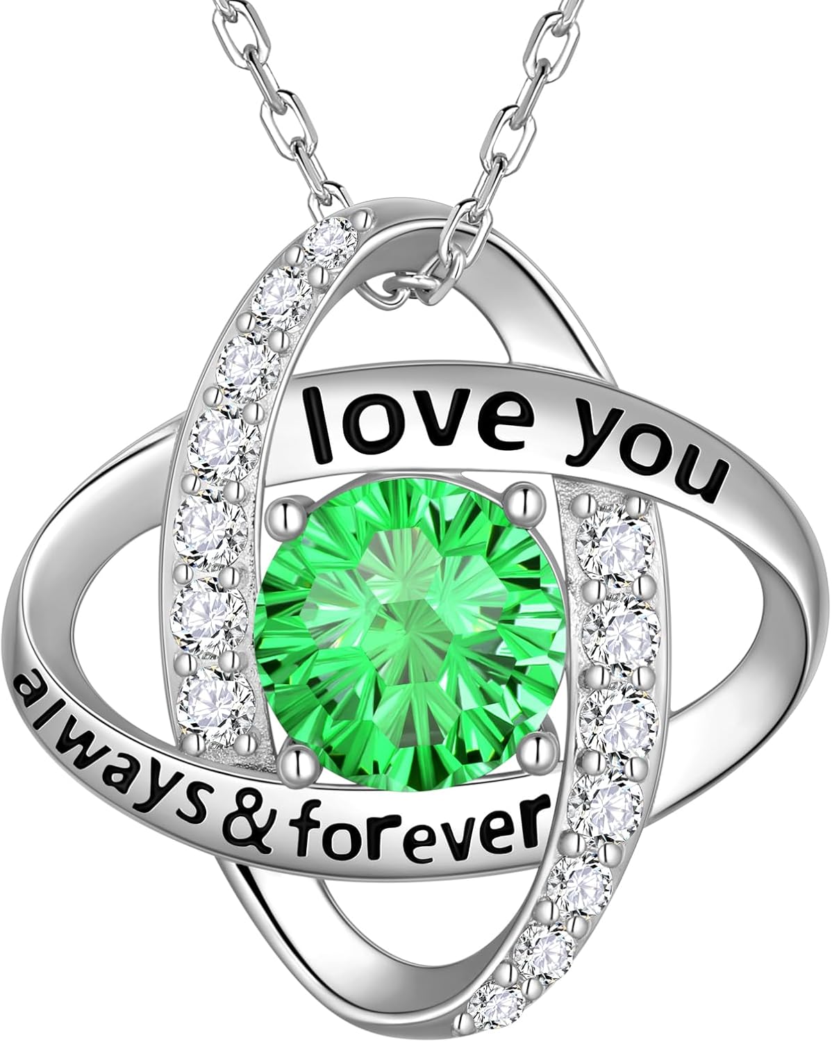 Aurora Tears Birthstone Love Knot Pendant Necklace - 925 Sterling Silver Firework-Cut Cubic Zirconia Love You Forever Necklace Anniversary Birthday Jewelry Gift for Women Wife Mom Daughter