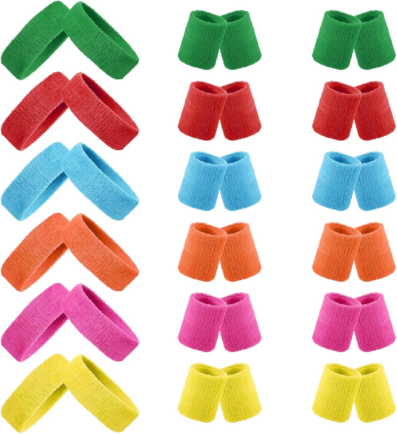 - Package include 3 Pieces: 12 pieces workout headbands and 24 pieces wrist sweatbands. Headbands/wristbands for women men girls boys, great for gym workout, yoga or 80s/90s costume.