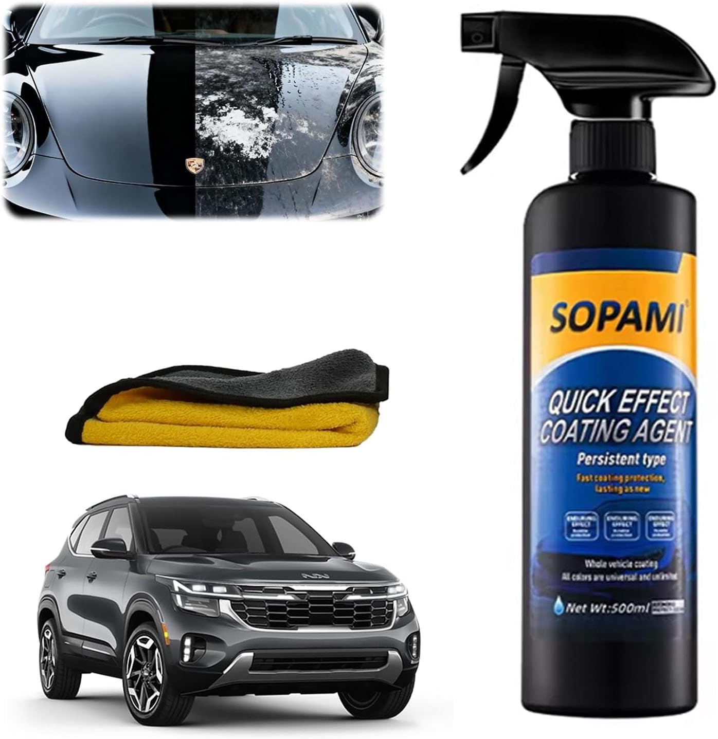 Sopami Car Coating Spray,Quick Effect Coating Agent,Quickly Coat Car Wax,Car Scratch Wax Polish Spray Waterless Wash,Oil Film Emulsion Glass Cleaner with towel