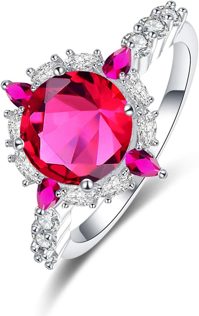 Psiroy 925 Sterling Silver Plated Simulated Ruby Spinel Halo Engagement Ring for Women