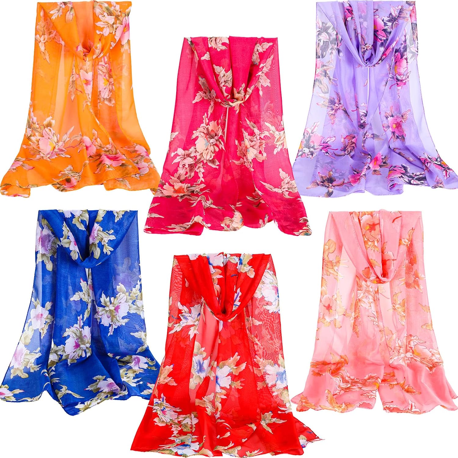 Sureio 6 Pcs Scarves for Women Lightweight Summer Floral Print Pattern Scarf for Women Dressy Long Thin Scarf Shawl(Chic Style)