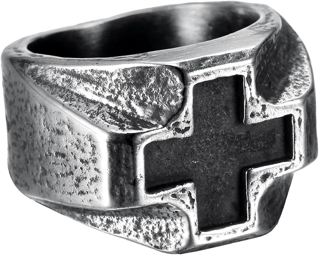 Retro Stainless Steel Mens Cross Ring, Bold Black Design, Durable Handcrafted Jewelry Gift