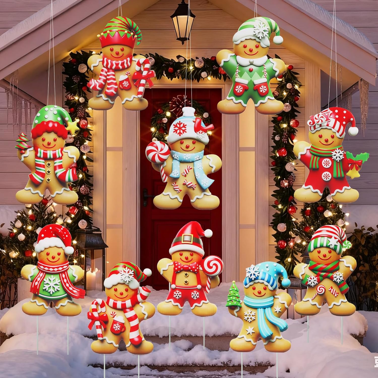 - 【Immediately catch your attention - a charming Christmas gingerbread theme】This Christmas gingerbread Man courtyard logo features a warm gingerbread design and classic Christmas elements such as scarves, Christmas trees, snowflake hats, gift boxes and candies. Paired with various Christmas hats and accessories, the warm and inviting color scheme adds fun to your holiday season and attracts neighbors and passers-by.