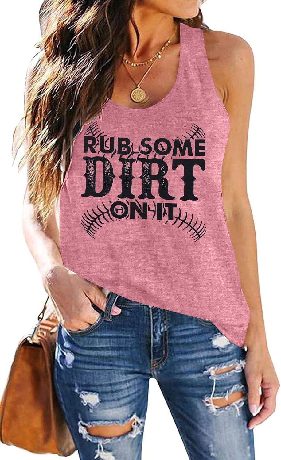 Rub Some Dirt On It Tank Tops Women Baseball Sleeveless Shirt Baseball Mom Shirts Letter Printed Softball Tees Tops