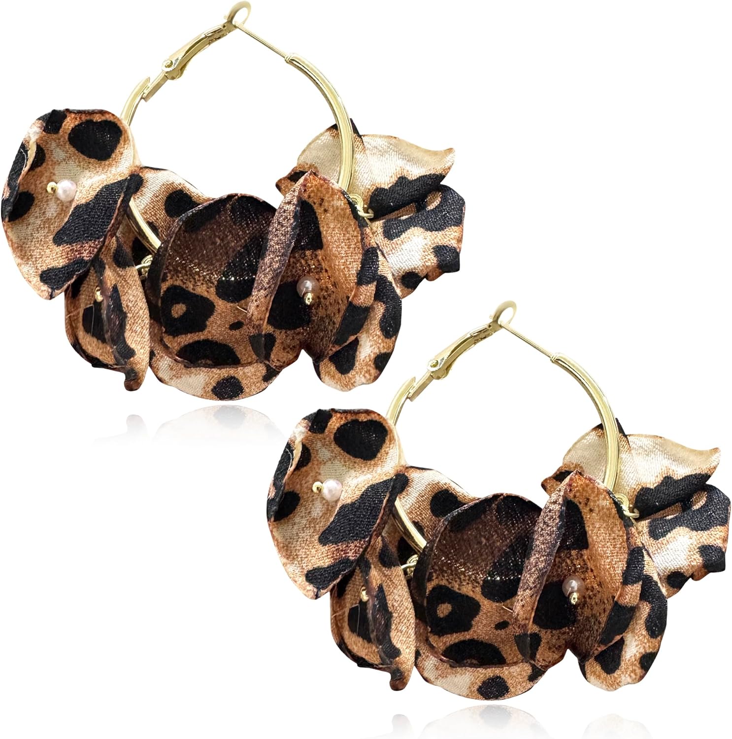 GPASTG Bohemian Fabric Flower Petal Pearl Dangle Drop Stud Round Hoop Earrings For Women