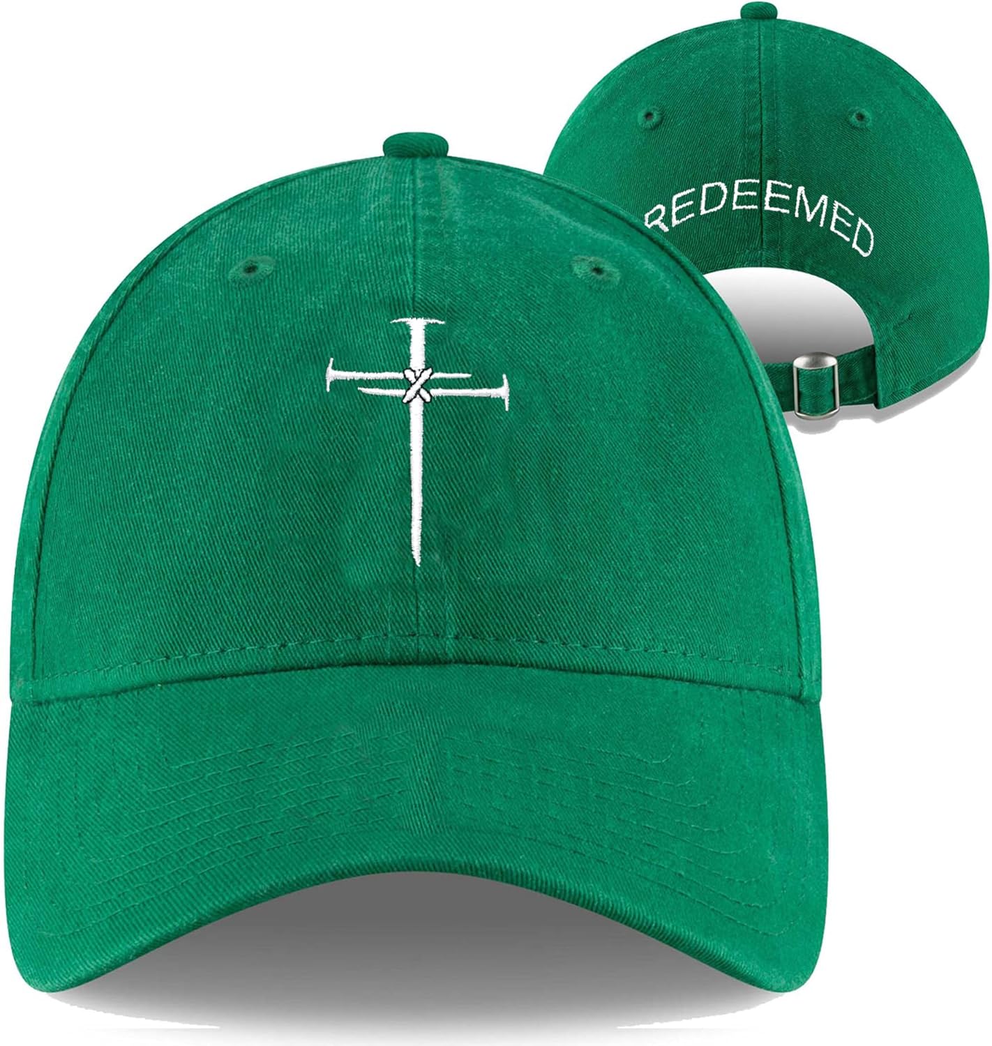 Christian Redeemed Cross Nails Hats for Men Women, Vintage Adjustable Cotton Embroidered Front & Back Baseball Cap