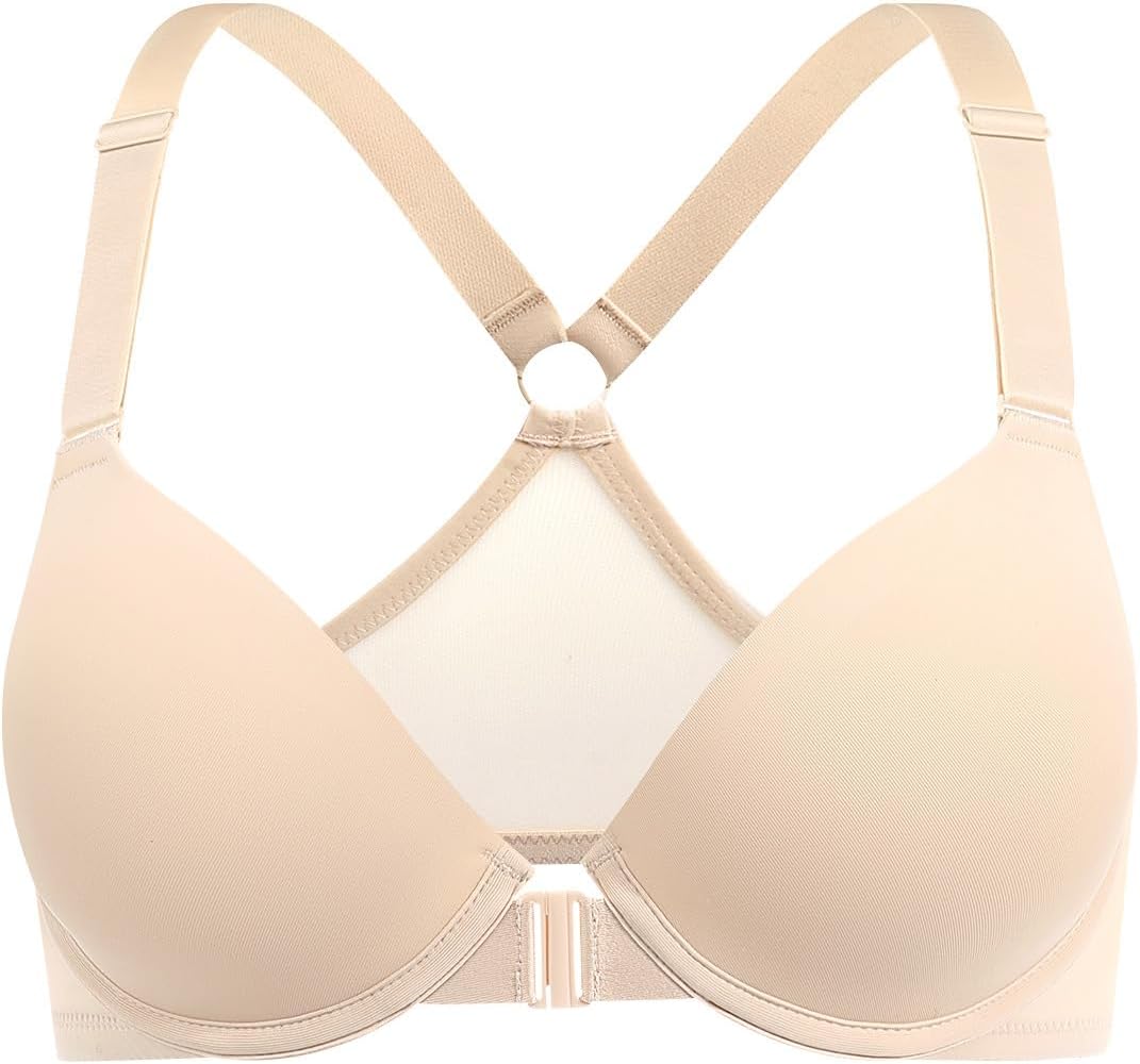 Front Closure Bras for Women Racerback Plunge Underwire Lightly Padded Seamless Bra B-DD Cups