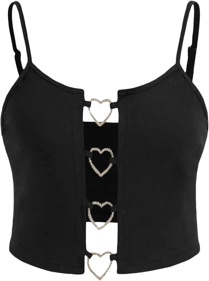 SOLY HUX Women's Plus Size Cut Out Cami Crop Top Ring Linked Sexy Y2k Tops