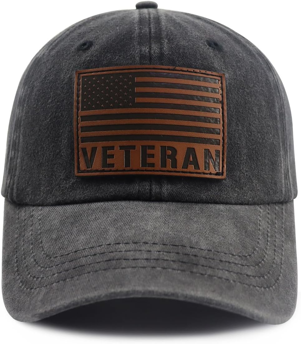 American Flag Veteran Hat for Men Women, Adjustable Cotton Leather Patch Army Military Patriotic Baseball Cap
