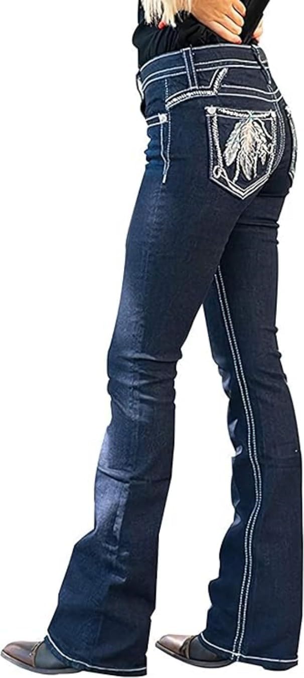 Bootcut Jeans for Women,Stretchy Feather Flower Embroidery Mid Rise Slim Straight Leg Pants Jeans