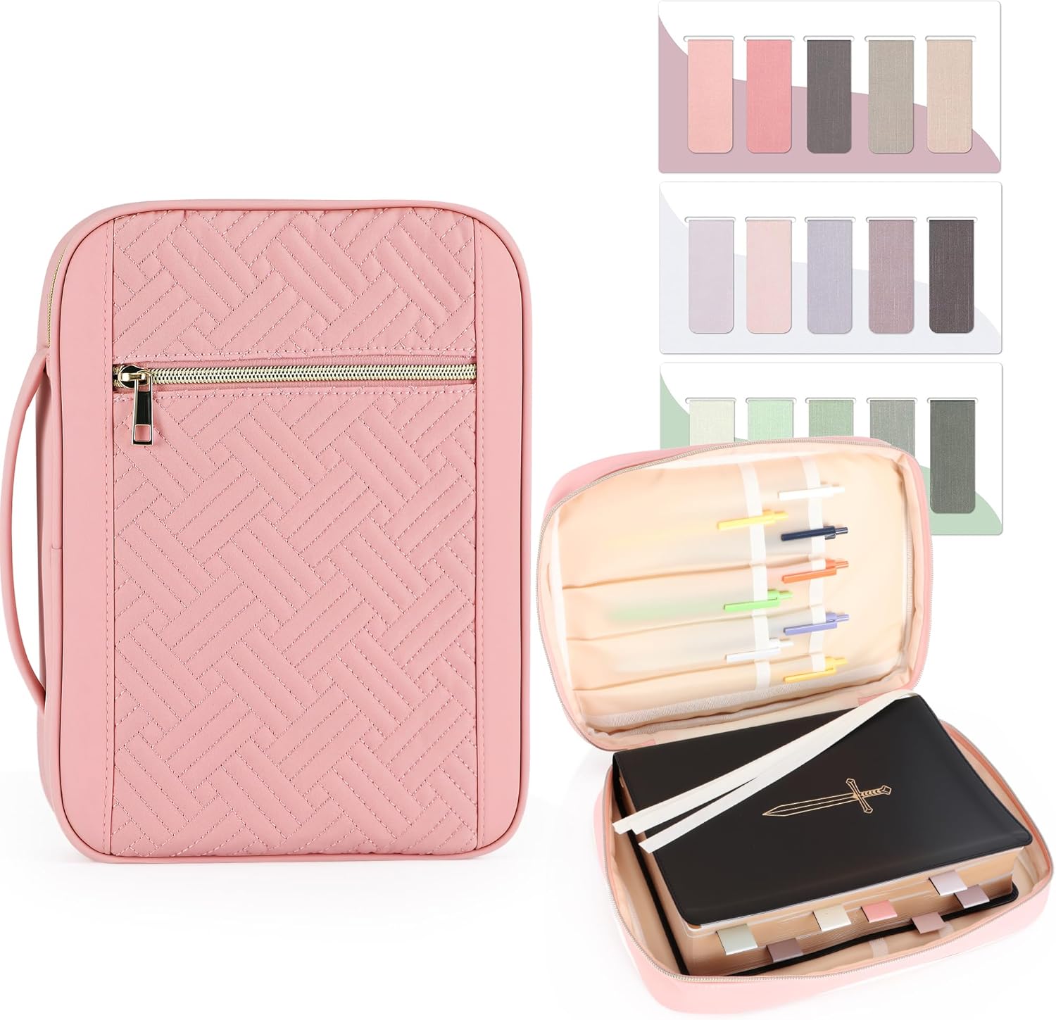 - Two-Piece Bible Cover Set: Includes a quilted fabric Bible case and 15 magnetic bookmarks; a complete set to protect your Bible and mark favorite verses; perfect for personal use or as a thoughtful gift for Bible lovers