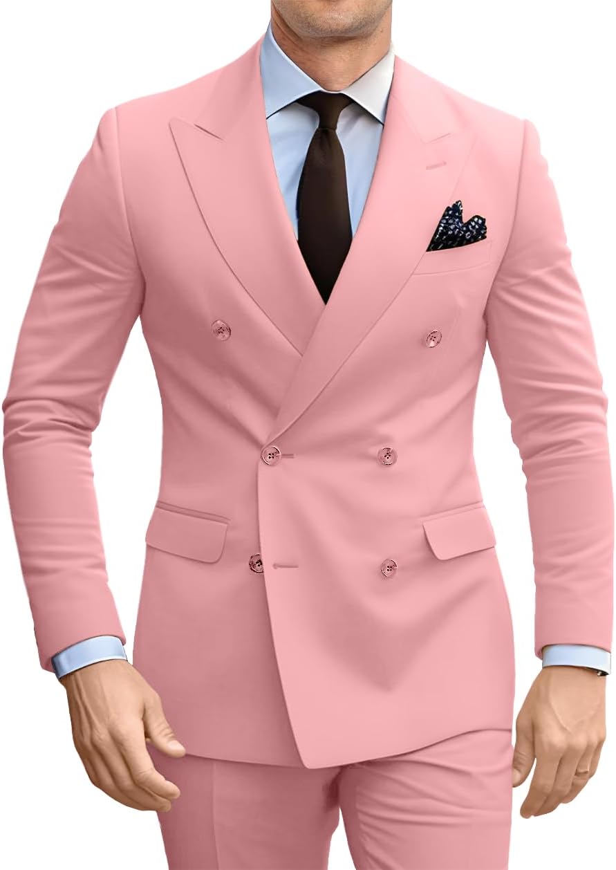 Double Breasted Suit Men Slim Fit 2 Pieces Suit Blazer Pants Formal 2 Button Tuxedo Jacket for Wedding Business Prom