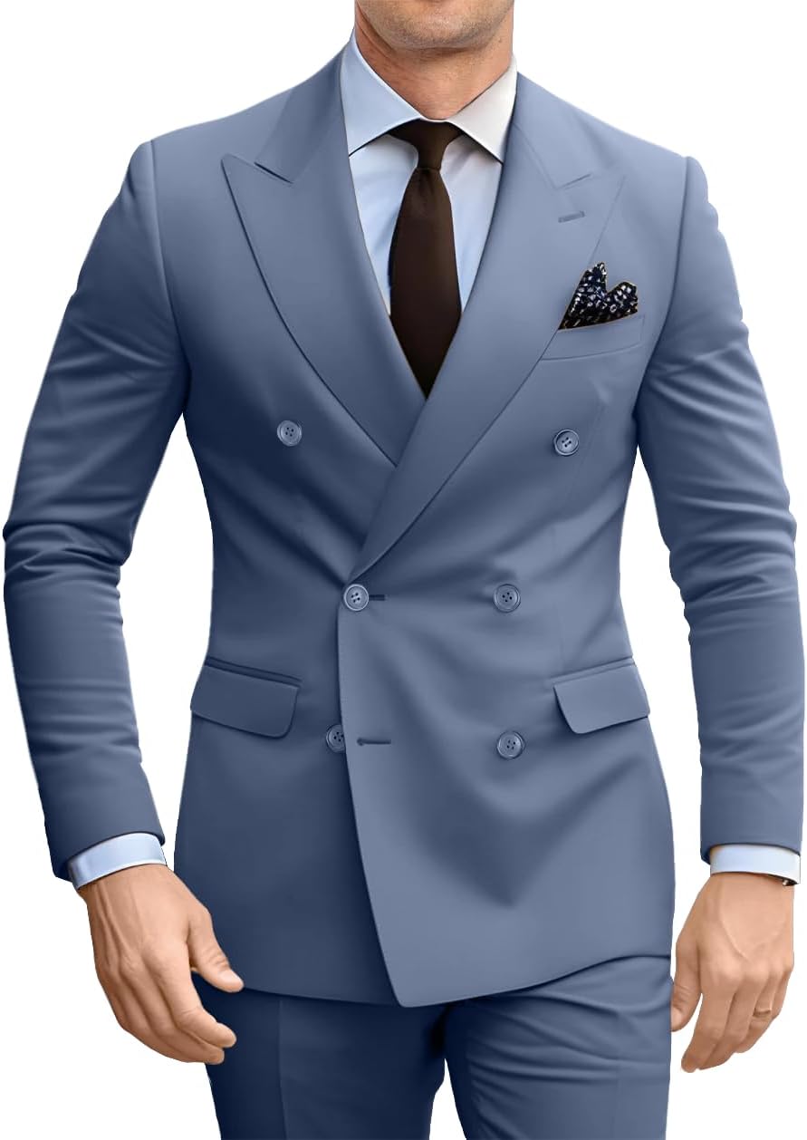 Double Breasted Suit Men Slim Fit 2 Pieces Suit Blazer Pants Formal 2 Button Tuxedo Jacket for Wedding Business Prom