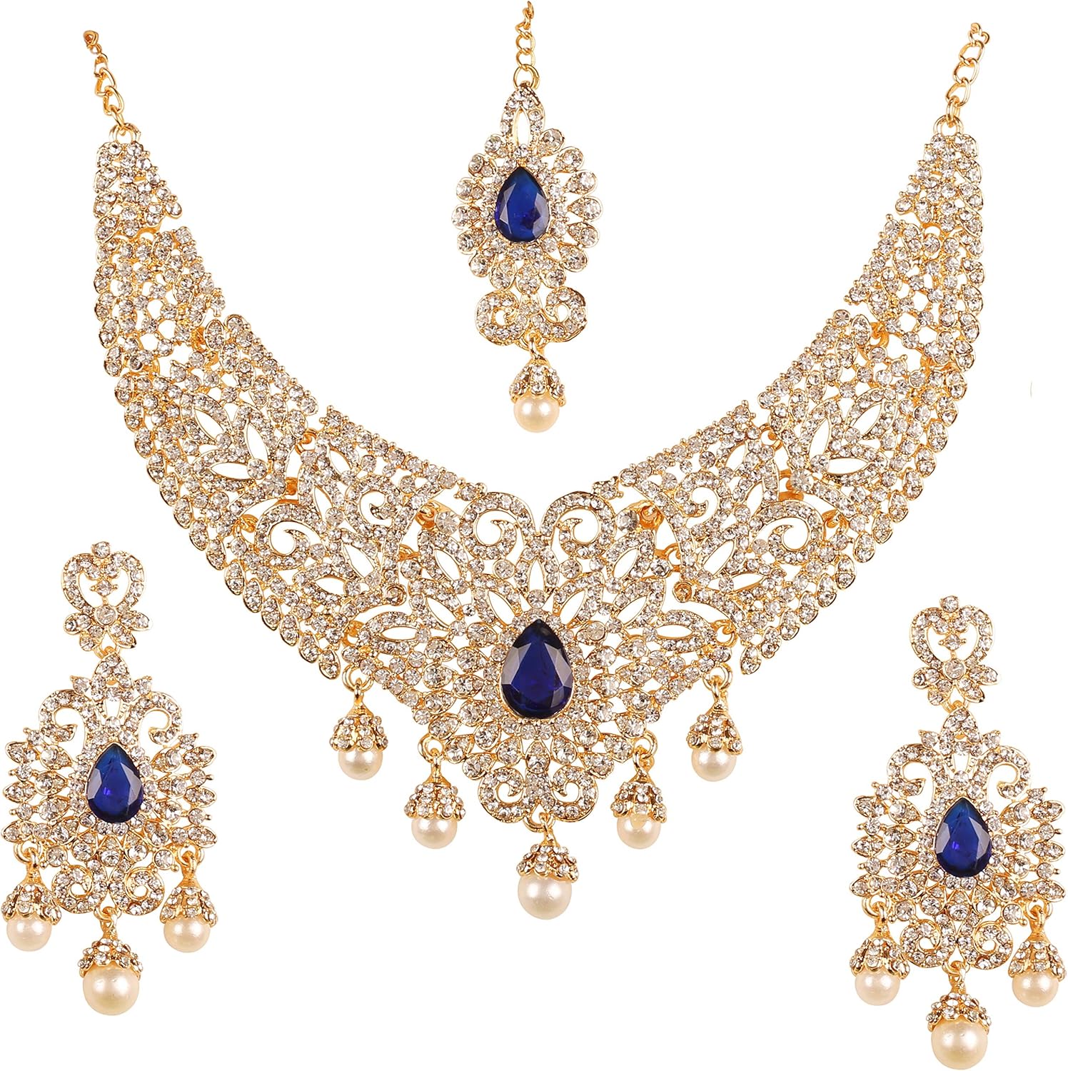 Touchstone Indian jewelry sets for women tikka wedding necklace costume guest statement bollywood rhinestones crystal faux pearls gold big royal neck piece set bridal fashion accessories