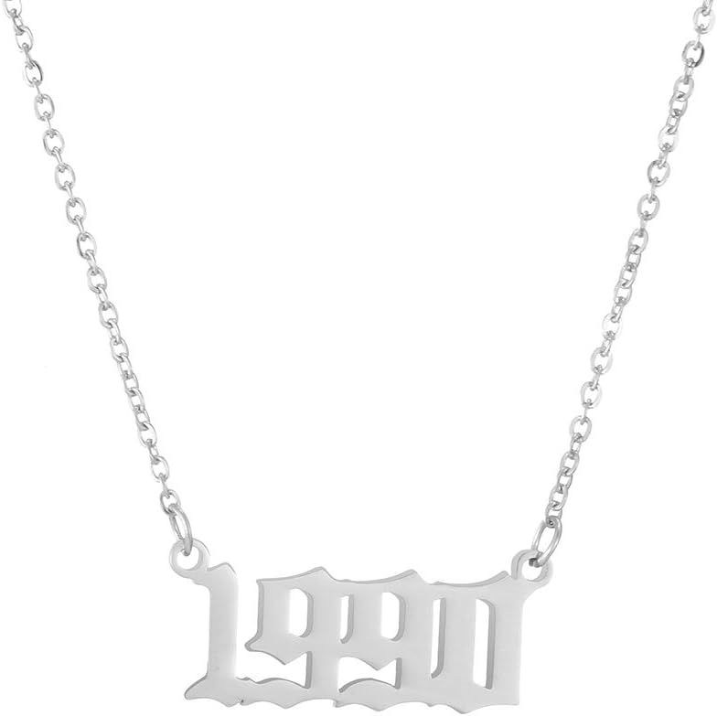SKQIR Birth Years Necklace,Initial Year Number Pendant Necklace Birthday Gift Charm Friendship Old English Arabic Mumerals Stainless steel Necklace Jewelry for Women Girl