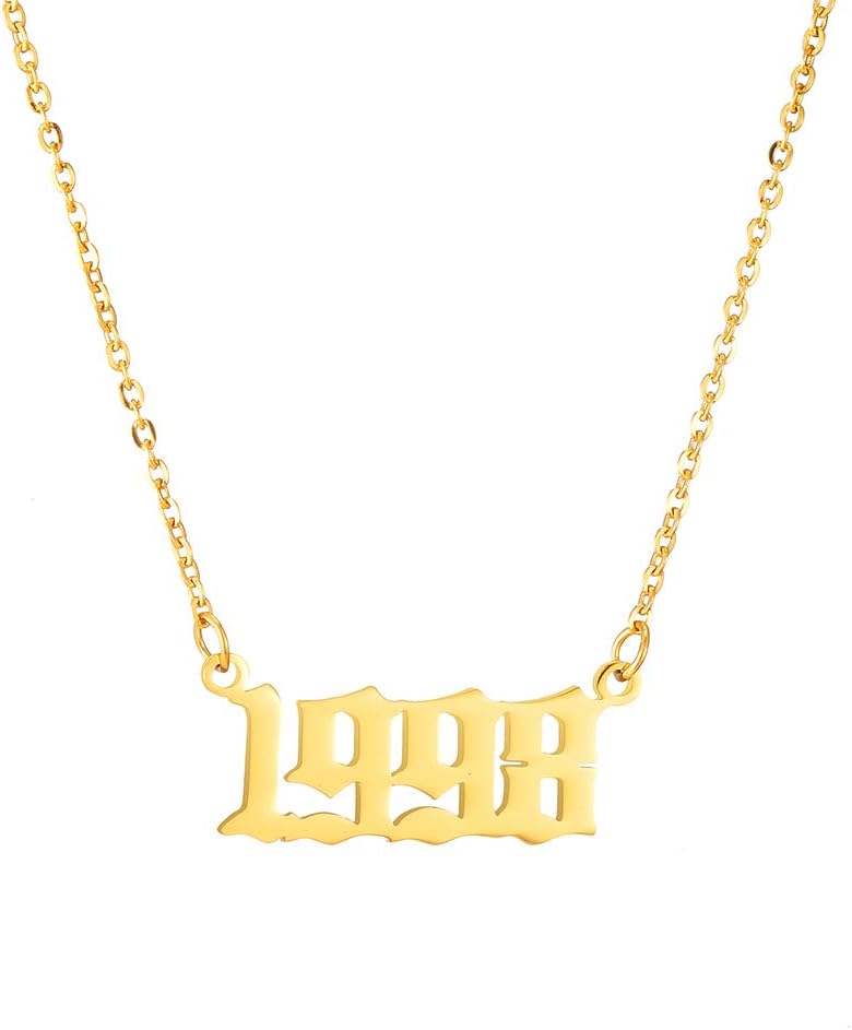 SKQIR Birth Years Necklace,Initial Year Number Pendant Necklace Birthday Gift Charm Friendship Old English Arabic Mumerals Stainless steel Necklace Jewelry for Women Girl