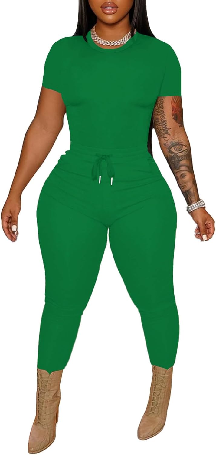 HBQ Women 2 Piece Outfits Sweatsuits Track Suits Crop Tops Biker Long Pants Workout Jogger Sets