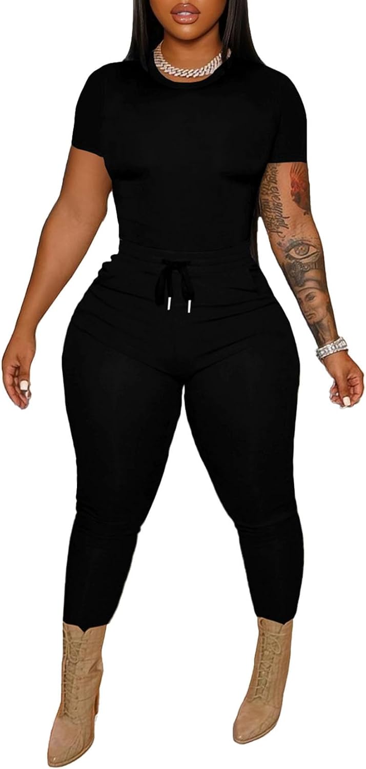 HBQ Women 2 Piece Outfits Sweatsuits Track Suits Crop Tops Biker Long Pants Workout Jogger Sets