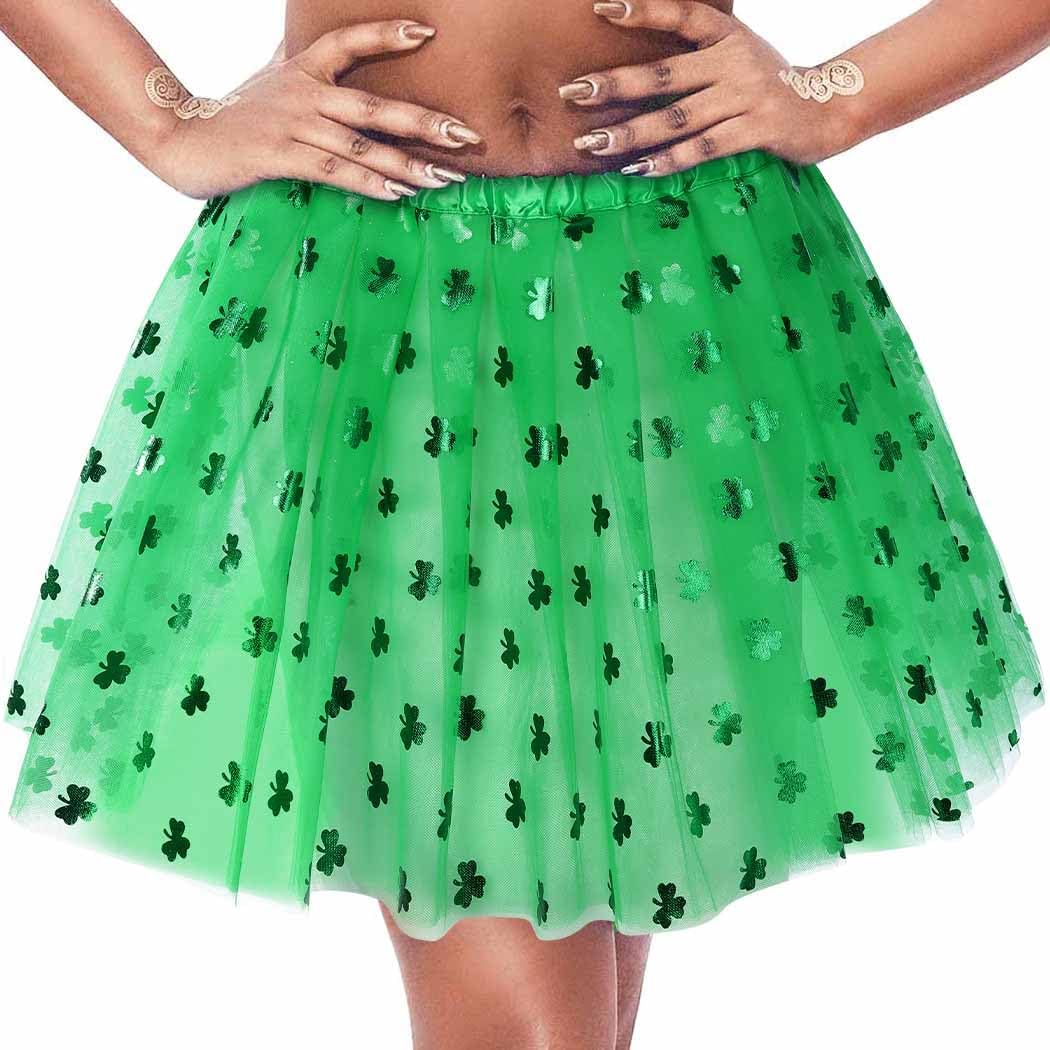 DRESBE St. Patrick's Day Skirt Green Shamrock Tutu Elastic Clover Dance Skirts Irish Festival Costume for Women