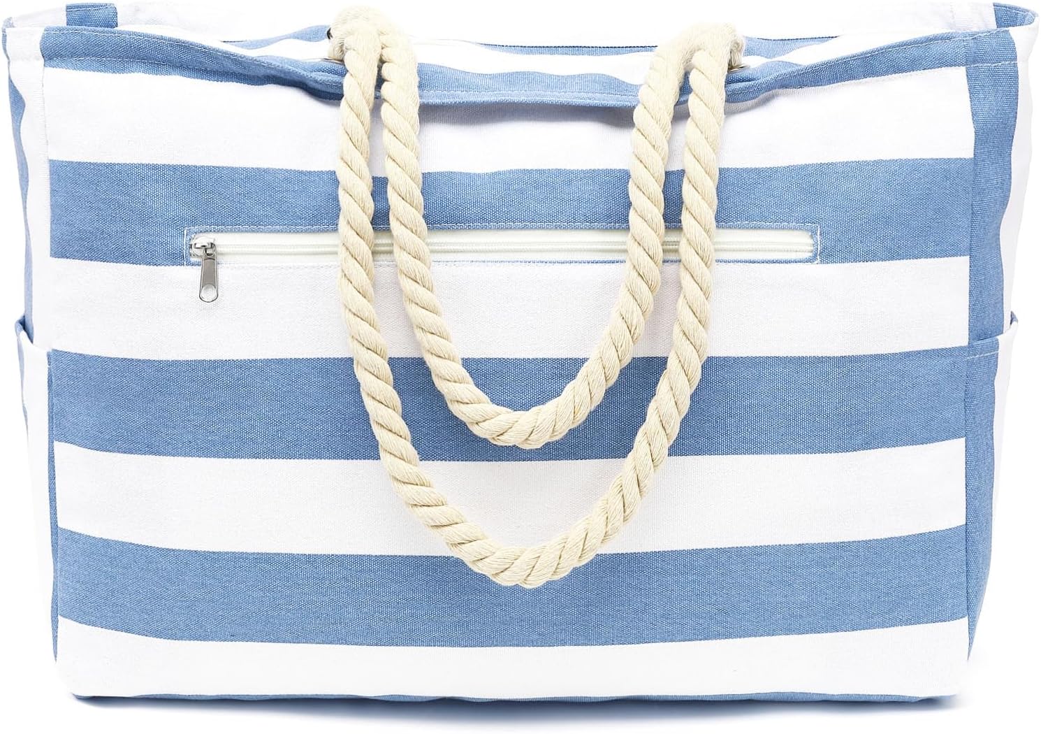 Large Canvas Beach Bag for Women, Beach Bags Waterproof Sandproof with Zipper & Wet Bag Cruise Essentials