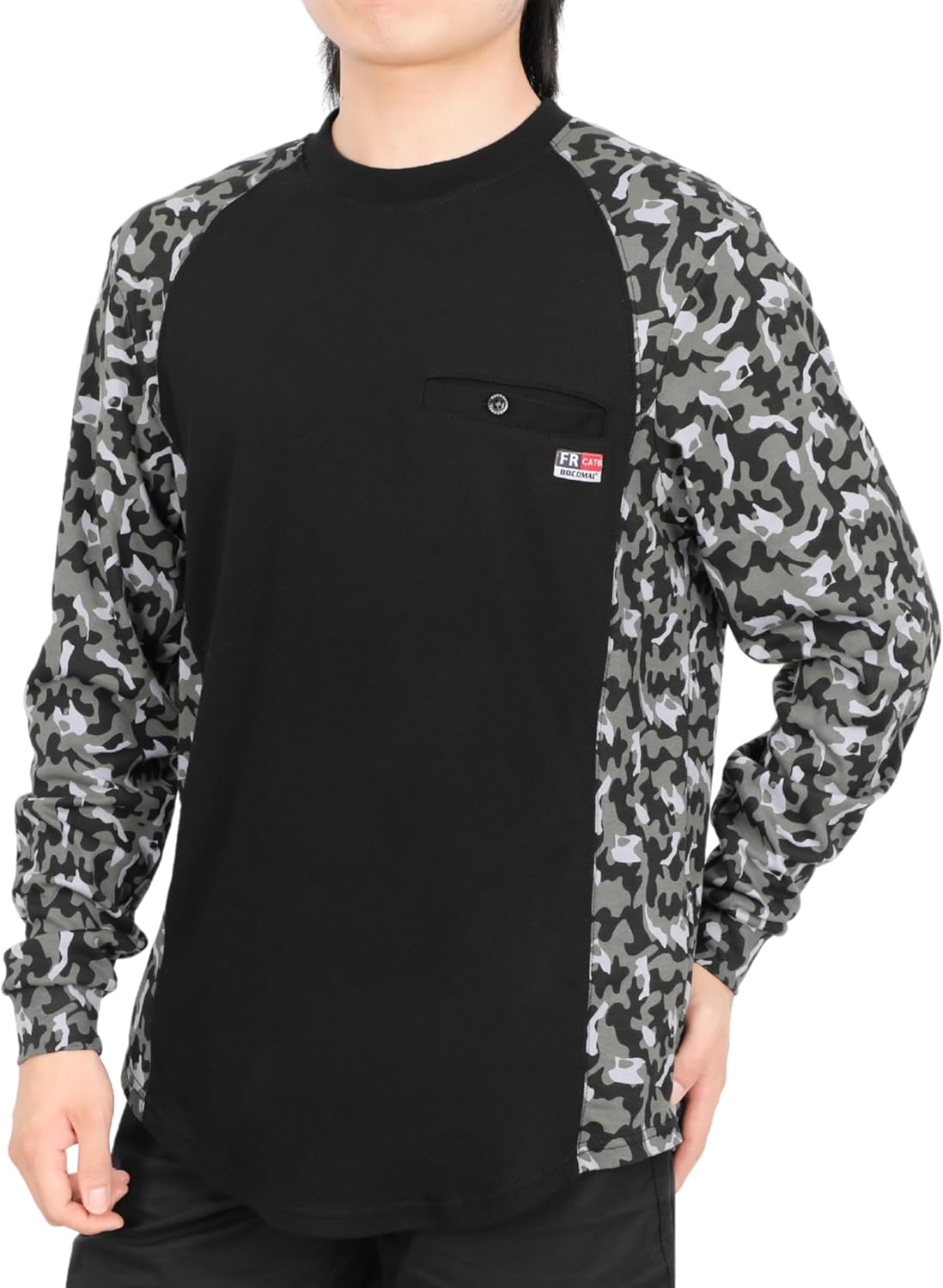 BOCOMAL FR Shirts Crewneck Camo Two-Tone 5.5oz Lightweight Melt Pocket Flame Resistant Long Sleeve Welding Shirt