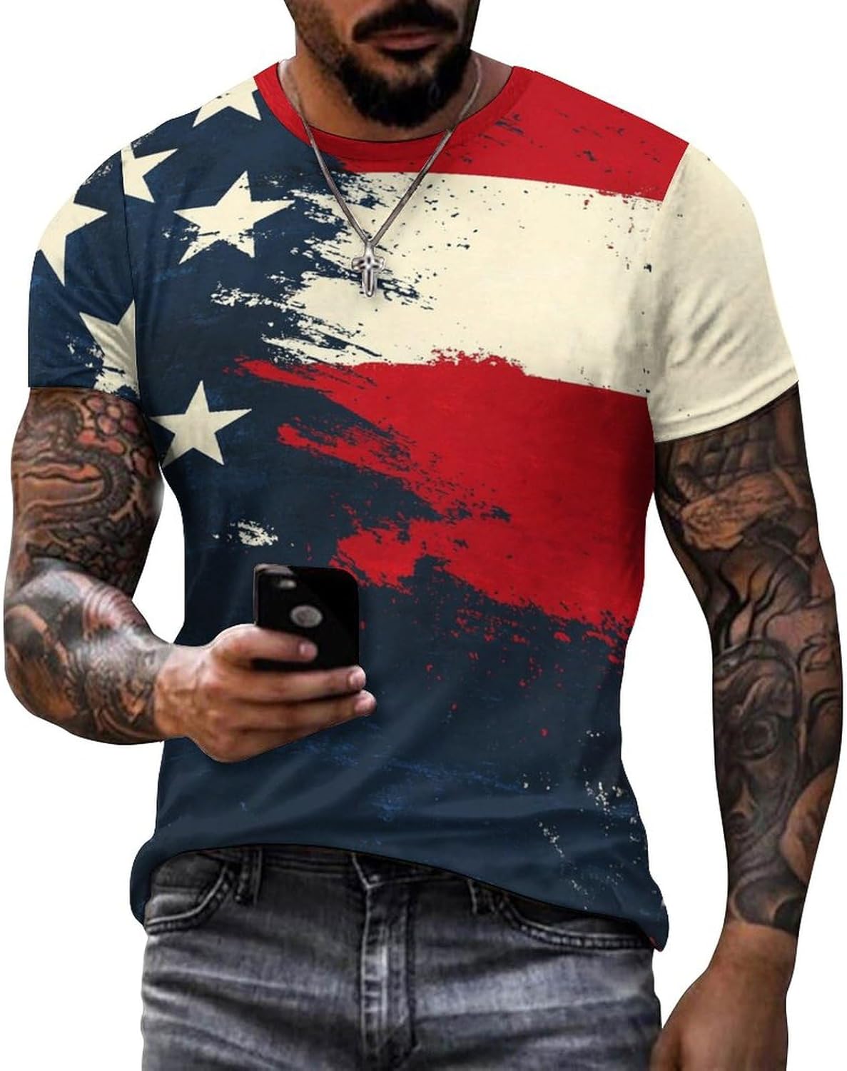 Veterans Day Shirt Amercian Flag Patriotic Short Sleeve Crewneck Pullover Casual Memorial Day Mens Gift T-Shirt