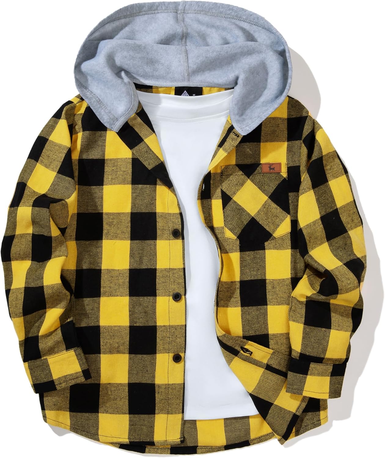Boys Plaid Flannel Shirts Unisex Kids Long Sleeve Casual Button Down Shirt with Hood
