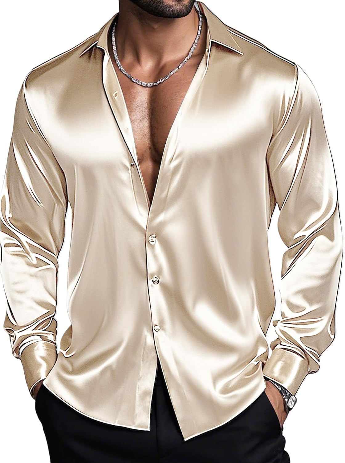 Barry.Wang Mens Solid Stretch Dress Shirts Long Sleeve Button Down Shirts Formal Business Prom Party Wedding