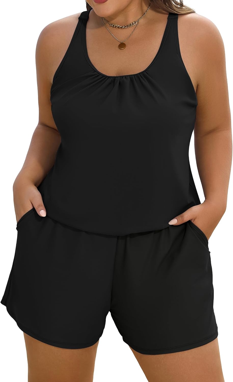 Arolina Women's Plus Size Swim Romper One Piece Swimsuits Modest Bathing Suit with Pockets (S-24W)