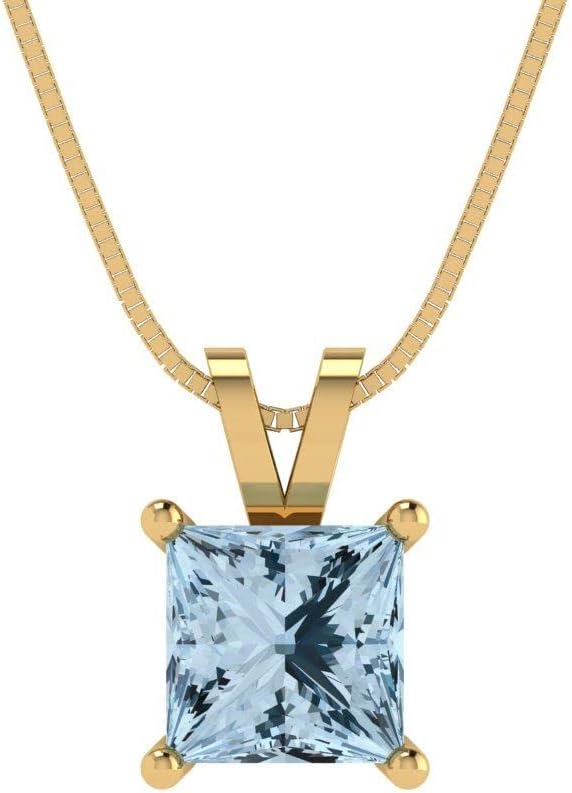 Clara Pucci 14K Yellow Gold Plated Solitaire 16" Box-Chain Necklace - Sterling Silver 1.5ct Princess Cut Aquamarine Pendant