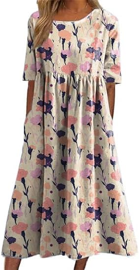 Boho Sundresses for Women Trendy Short Sleeve Crew Neck Floral Casual Plus Size Dress