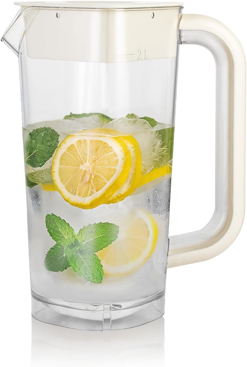 - Large 2L (68oz) Capacity: With a generous 2-liter (0.53 gallon) volume, this pitcher is perfectly sized for serving groups without constant refills. It is the ultimate storage solution for milk, fresh juices, lemonade, and cold brew coffee, making it a must-have essential for both your daily kitchen routine and professional event catering.