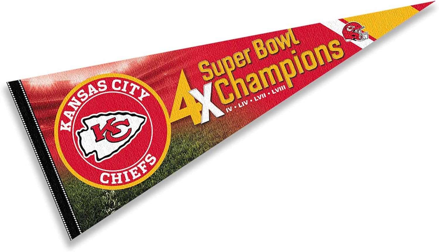Chiefs Super Bowl 2024 and 4 Time Champions Full Size Large Pennant