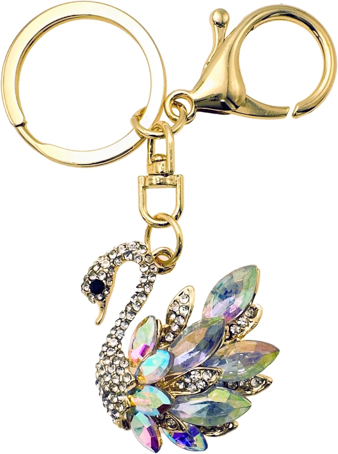 MONNEL Women's Zinc Alloy Metal Crystal Big Swan Charm Lobster Clasp Key Ring Keychain ZM10 (White)