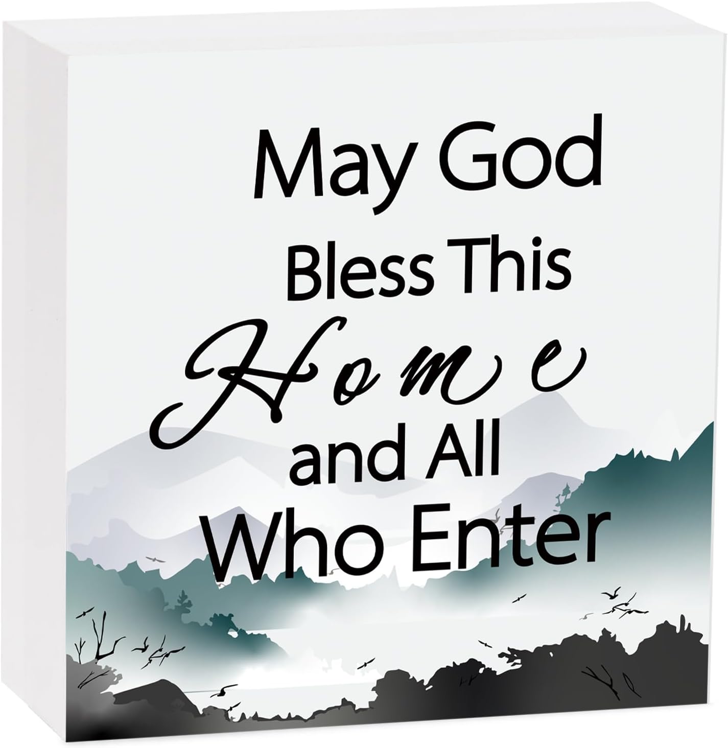 - Christian Home Decor: This 5 x 5 inch square free-standing May God Bless This Home wooden box sign will bring a warm atmosphere of hope and encouragement to home, farmhouse, bedroom, and living room. Great size for home office christian table decor and wall decor art.
