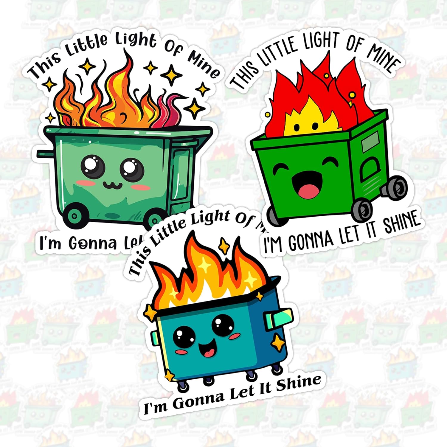 - Unique Meme + Faith Twist: This 3-piece sticker set blends the playful dumpster fire meme with the uplifting Christian song lyric “This Little Light of Mine, I’m Gonna Let It Shine.” Perfect for anyone who loves humor with a touch of faith, these designs bring both laughter and encouragement wherever you stick them.
