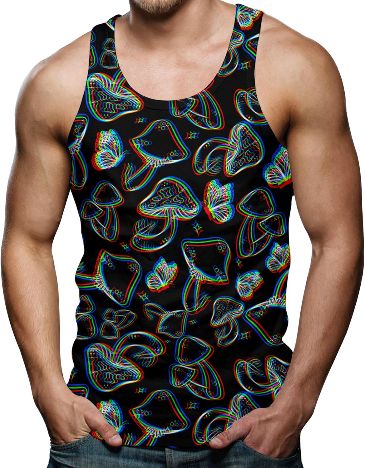 RAISEVERN Mens Tank Top Sleeveless Tee Shirt Gym Workout T-Shirt